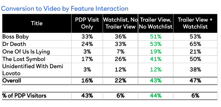 And hey, since we are already talking navigation let’s talk about that CTA. If the trailer is already playing we run the risk of users accidentally hitting the Watch Trailer CTA, certainly a frustrating experience. It also turns out that user who interact with a trailer and add to my stuff have the highest conversion rate.