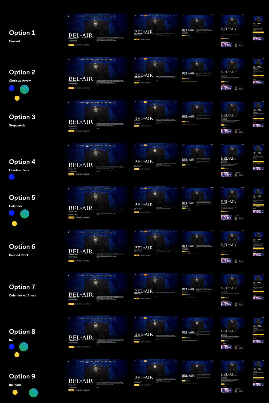 As it turned out, the metadata line used in SLE PDP was not the same on the backend as our VOD PDP which meant retrofitting was no longer an option. Though the position would remain the same, we needed to define a new field and icon specifically for VOD Upcoming PDP.