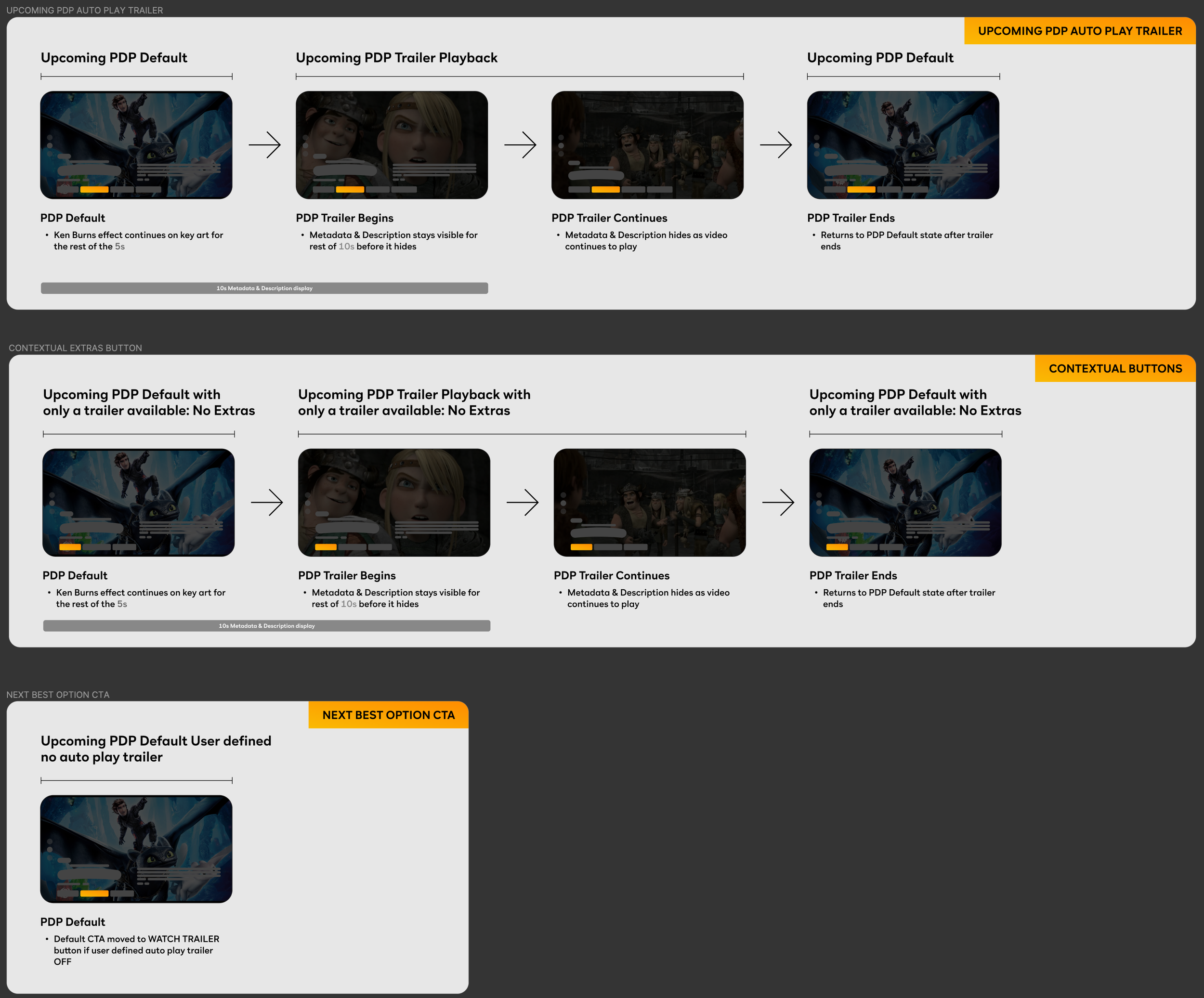 Having the trailer available in three different places was odd and frankly an “Extras” tab with no extras in it is misleading. My goal is to provide clear and enjoyable user experience while creating a unique PDP asset for the business, so we created the first rule for upcoming pdp.